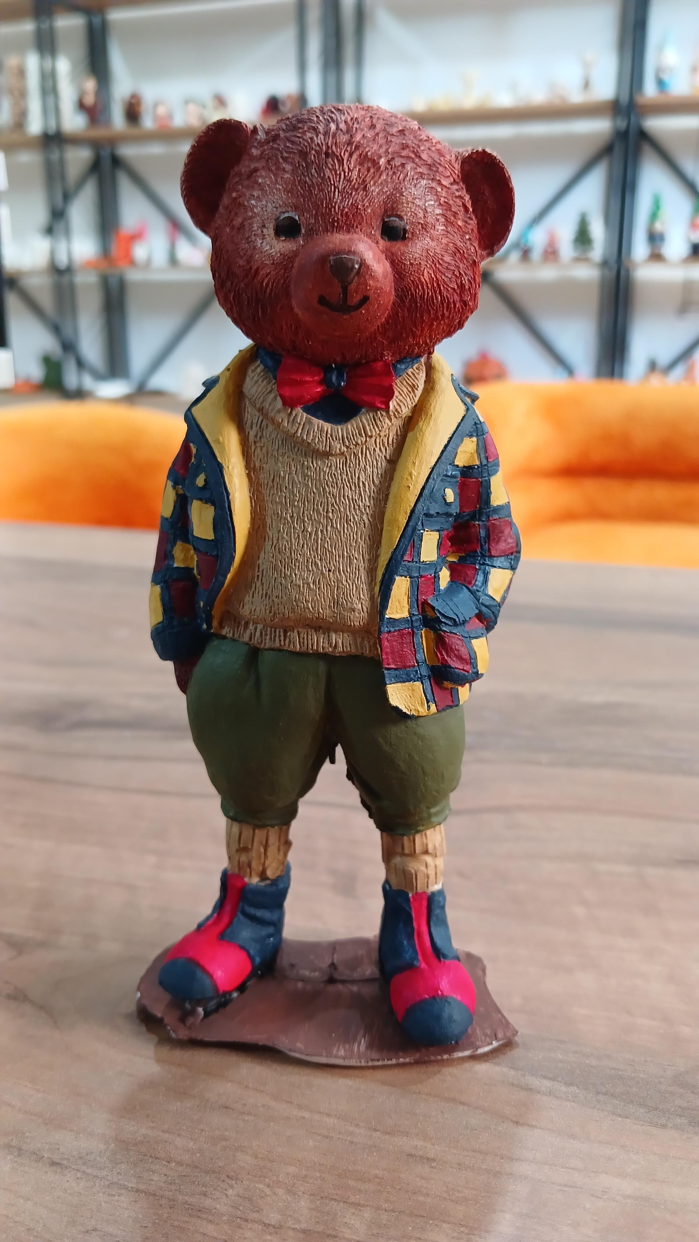 El boyaması Ayı fiğürü 15 cm polyester döküm